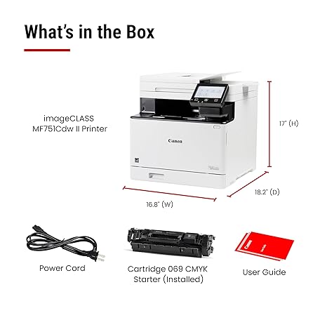 • Canon Color imageCLASS MF751Cdw II - Wireless Duplex Laser Printer, Multifunction with Copier, Scanner, Automatic Document Feeder, 3 Year Limited Warranty, 35 PPM