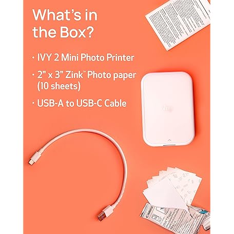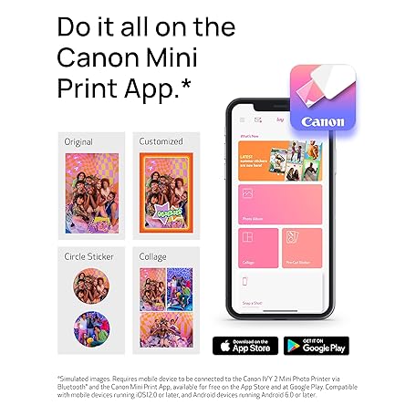 Thông tin sản phẩm Canon Ivy 2 Mini Photo Printer, Print from Compatible iOS & Android Devices, Sticky-Back Prints, Pure White