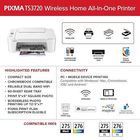 Sản phẩm Canon PIXMA TS3720 Wireless All-in-One Printer for Basic Home Printing, White đang được bán với giá ưu đãi là $47.96 tại nước Mỹ.