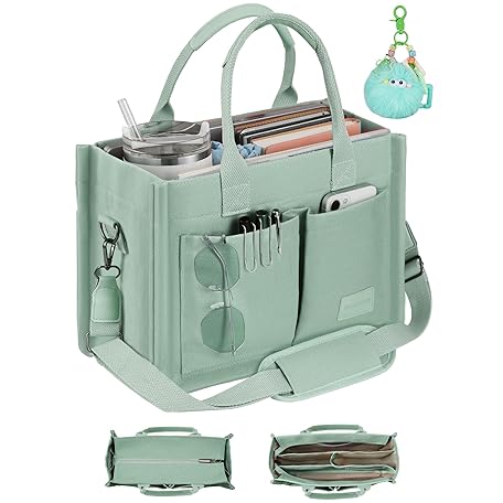 • Canvas Tote Bag Purse for Women with Zipper Closure, Individual Compartments & Bottom Support