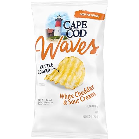Thông tin sản phẩm Cape Cod Waves Potato Chips, Wavy Cut White Cheddar & Sour Cream Kettle Chips, 7 Oz