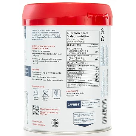 Thông tin sản phẩm Capriss Whole Goat Milk Powder, 22.5oz | Canadian Family Farm Sourced, Vitamin D Enriched, High Protein & Calcium, A2 Milk, Easy to Digest, Gluten Free | No Antibiotics, No rBST, No Preservatives