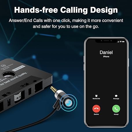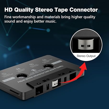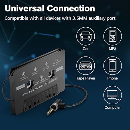 Thông tin sản phẩm Car Cassette Audio Adapter with Hands-Free Calling Microphone, Universal Cassette Tape Aux Adapter for Car, MP3 Player, Smartphone, 3.2 Feet Cable