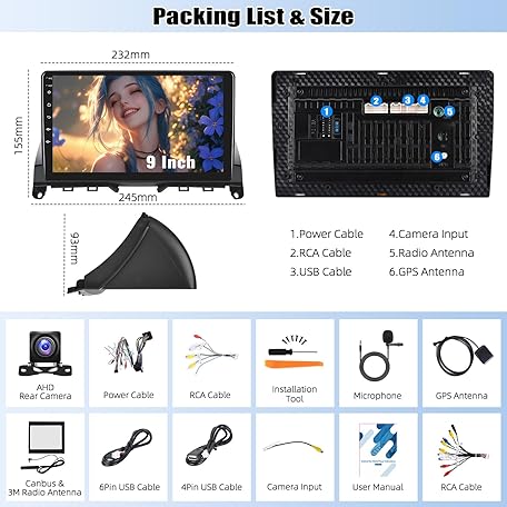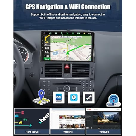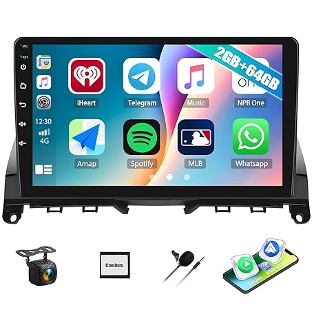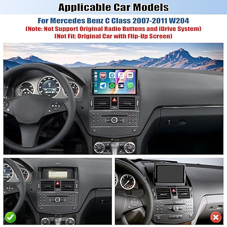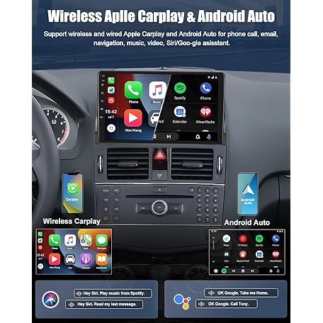 Car Stereo Radio with Wireless Apple CarPlay Android Auto for Mercedes Benz C-Class 2007-2011 W204 9” Android 13 Touch Screen Bluetooth Car Radio with GPS Navigation FM HD Backup Camera [2+64GB]