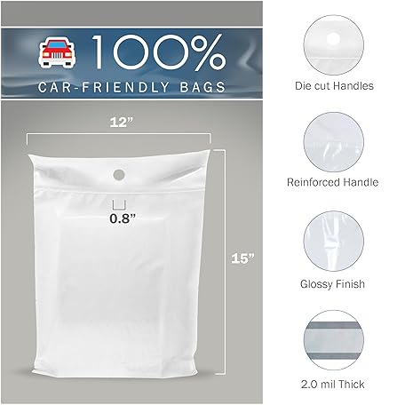 Car Trash Bags 50 pcs White Plastic - 12x15x2 Thick Car Trash Bags Disposable Hanging - Disposable Car Garbage Bags - Easy Replace Car Trash Bag Small - Plastic Trash Car Bag by PPB