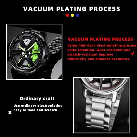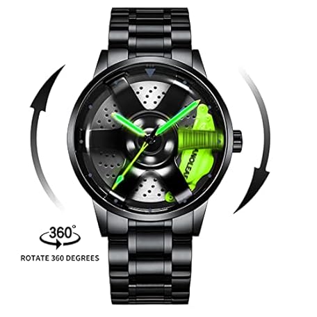 Thông tin sản phẩm Car Wheel Watch, Stainless Steel Mens Wristwatch with Spinning Car Rim Hub Design, Japanese Quartz Movement, Water Resistant, Scratch Resistant Gifts for Car Enthusiasts