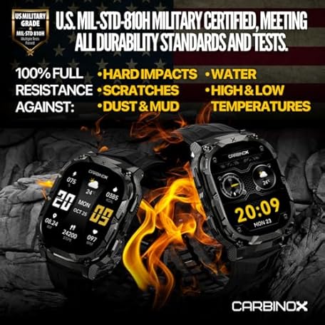 Thông tin sản phẩm CARBINOX Vortex Smartwatch (Answer/Make Calls), Military-Grade Rugged Fitness Tracker, IP69K Waterproof, Sport Design for Active Lifestyles