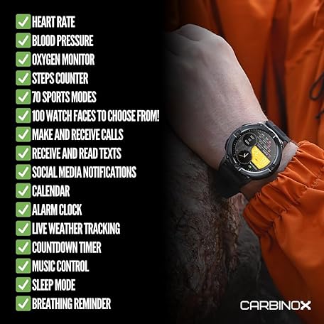 Thông tin sản phẩm CARBINOX X-Ranger Smart Watch (Answer/Make Calls), Rugged Fitness Tracker IP69K Waterproof, Compatible with Android and iOS, 14 Days of Battery Military Durable, AMOLED Screen