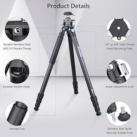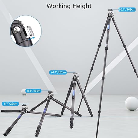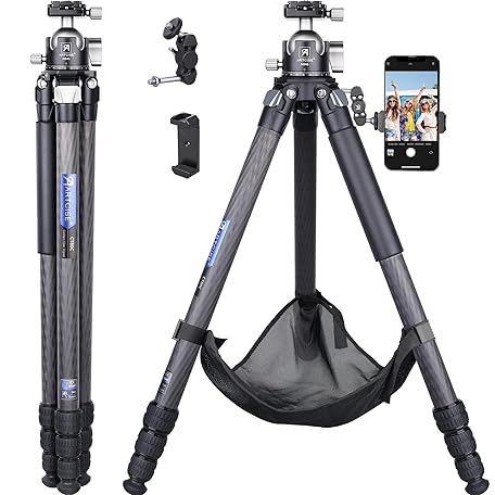 Carbon Fiber Tripod with 46mm Low Profile Ball Head and Stone Bag ARTCISE Heavy Duty Travel Camera Stand for Canon Sony Nikon DSLR Camcorder,Max Load 55lbs(Extra Gift:Stone Bag, Magic arm,Phone Clip)
