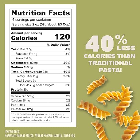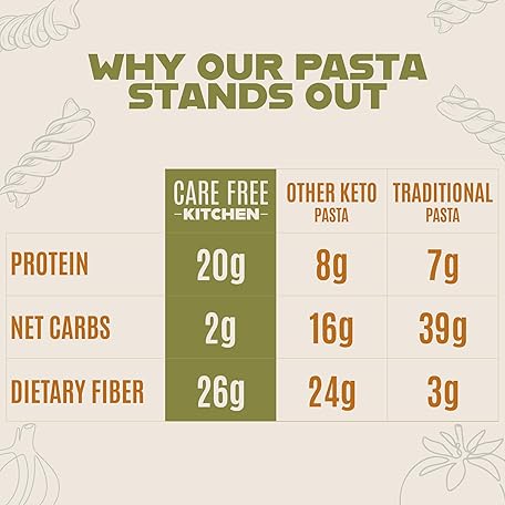 • Care Free Kitchen Plain 3-Pack (8 oz. Bags) Rotini Keto Pasta Noodles, 20g High Protein, Low Carb 2g Net Carbs, 26g High Fiber