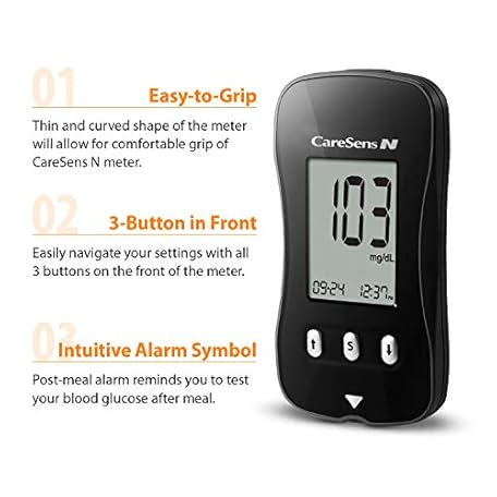 Sản phẩm CareSens N Blood Glucose Monitoring Meter (Auto Coding) - 1 Diabetes Blood Glucose Meter, 1 User Guide, 1 Quick Reference guide, 1 Case & 2 CR 2032 Batteries đang được bán với giá ưu đãi là $11.4341 tại nước Mỹ.