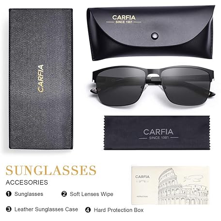 Thương hiệu CARFIA là cái tên nổi tiếng được rất nhiều khách hàng trên thế giới chọn lựa. Với kiểu dáng đẹp mắt, sang trọng, sản phẩm CARFIA Metal Mens Sunglasses Polarized UV400 Protection for Driving Fishing Hiking Golf Everyday Use CA5225 là sự lựa chọn hoàn hảo nếu bạn đang tìm mua một món cho riêng mình.
