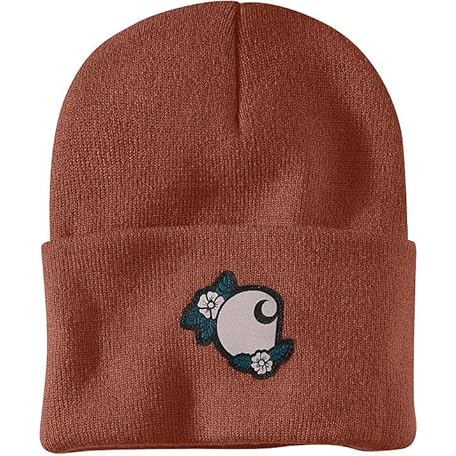 Carhartt AH6305 Womens Cuffed Knit 'Floral Patch' Beanie Hat, Sable - One Size US