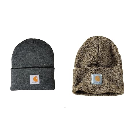 Carhartt Men's Knit Cuffed Beanie, Coal Heather/Dark Brown/Sandstone