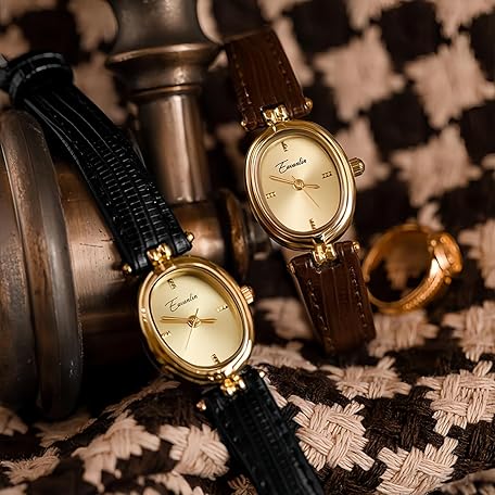 CARLIEN Womens Fashion Small Gold Oval Quartz Watches Vintage Leather Band Waterproof Luxury Casual Ladies Bracelet Wrist Watch Brown Black