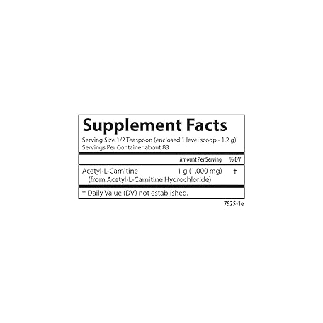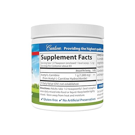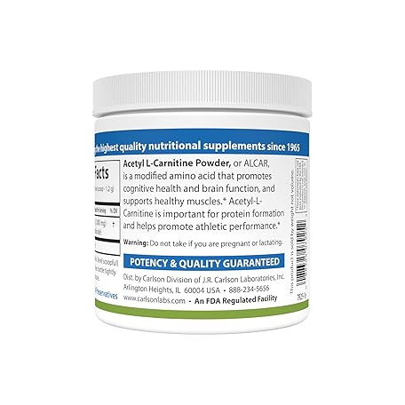 Thông tin sản phẩm Carlson - Acetyl L-Carnitine Powder, Free-Form Amino Acid, Cognitive Health, Brain Function & Muscle Support, 3.53 oz (100 g)