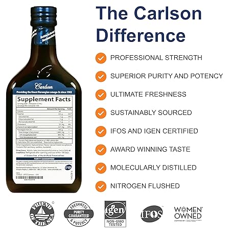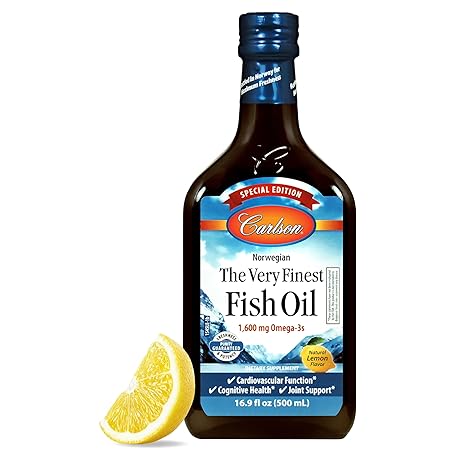 Thông tin sản phẩm Carlson - The Very Finest Fish Oil, Special Edition, 1600 mg Omega-3s, Liquid Supplement, Norwegian Fish Oil, Wild-Caught, Sustainably Sourced Liquid, Lemon, 500 mL (16.9 Fl Oz)