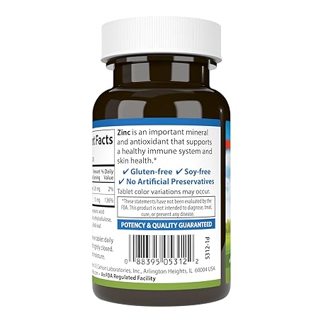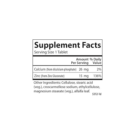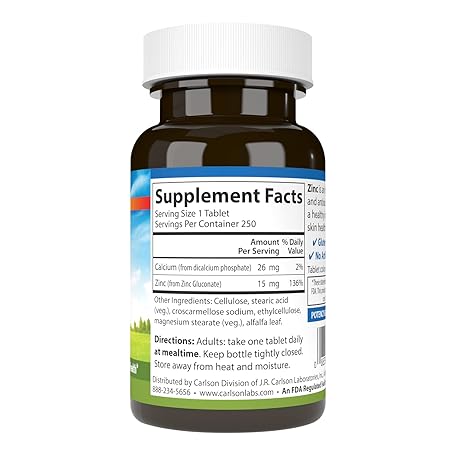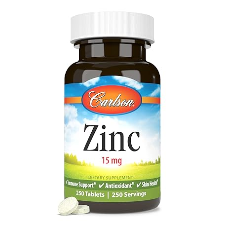 Carlson - Zinc, 15 mg, Zinc Supplement, Zinc Gluconate, Immune Support & Skin Health, Zinc Tablets, Antioxidant, Zinc Capsules, 250 Tablets