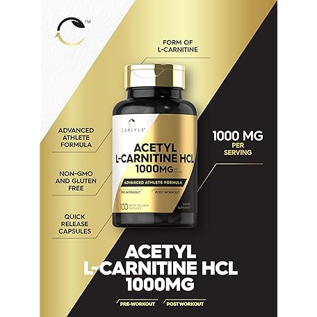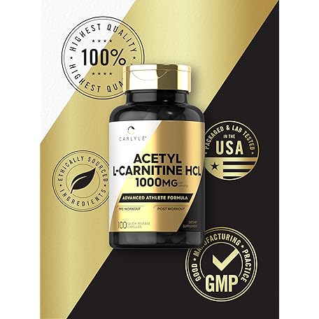 Sản phẩm Carlyle Acetyl L-Carnitine HCL | 1000mg | 100 Capsules | Advanced Athlete Formula | Pre-Workout Supplement | Non-GMO & Gluten Free đang được bán với giá ưu đãi là $10.8891 tại nước Mỹ.