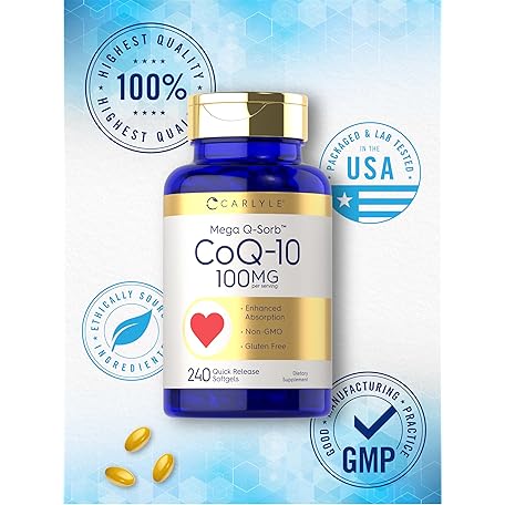 Sản phẩm Carlyle CoQ10 100mg Softgels | 240 Count | Mega Q-Sorb Coenzyme Q-10 | with Black Pepper Extract | Non-GMO and Gluten Free Supplement đang được bán với giá ưu đãi là $16.6661 tại nước Mỹ.