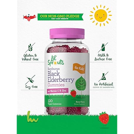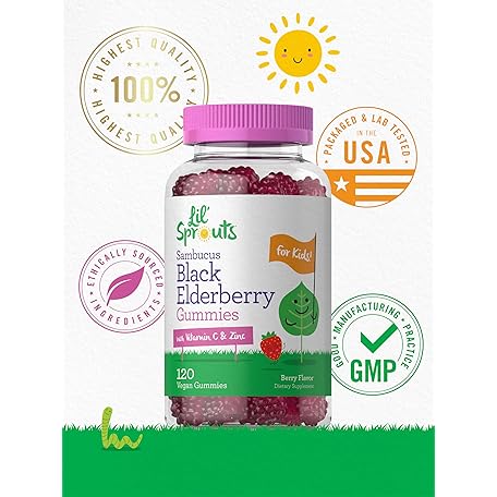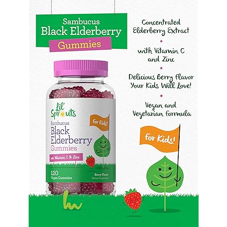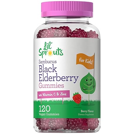 Thông tin sản phẩm Carlyle Elderberry Gummies for Kids | 120 Count | Zinc and Vitamin C | Berry Flavor | Vegan, Non-GMO, and Gluten Free | by Lil' Sprouts