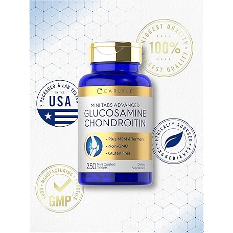Sản phẩm Carlyle Glucosamine Chondroitin MSM | 250 Mini Tablets | Advanced Formula with Turmeric | Non-GMO, Gluten Free đang được bán với giá ưu đãi là $10.8891 tại nước Mỹ.