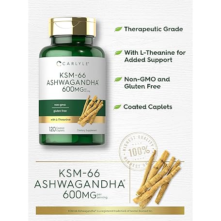 Thông tin sản phẩm Carlyle KSM-66 Ashwagandha 600mg | 120 Caplets | Extract Supplement with L-Theanine | Vegan, Non-GMO, Gluten Free