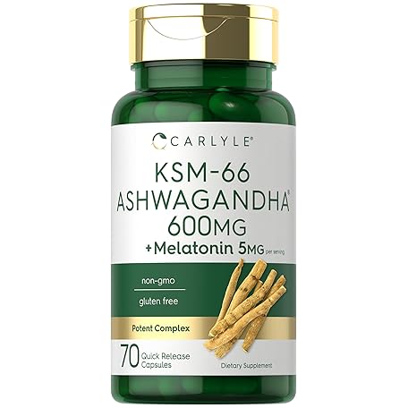 Sản phẩm Carlyle KSM-66 Ashwagandha Capsules 600mg | 70 Count | with Melatonin 5mg | Potent Complex | Non-GMO, Gluten Free đang được bán với giá ưu đãi là $10.0171 tại nước Mỹ.