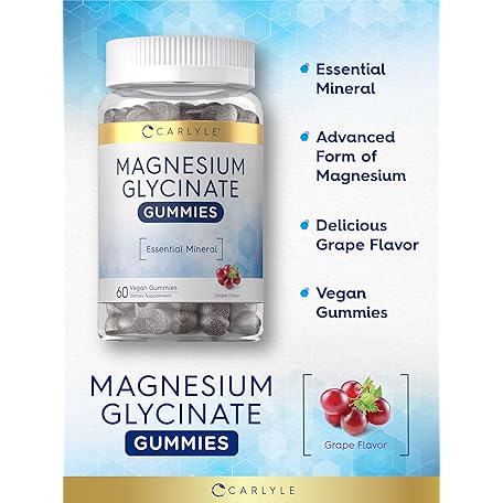 Thông tin sản phẩm Carlyle Magnesium Glycinate Gummies | 60 Count | Grape Flavor | Vegan, Non-GMO, Gluten Free Supplement