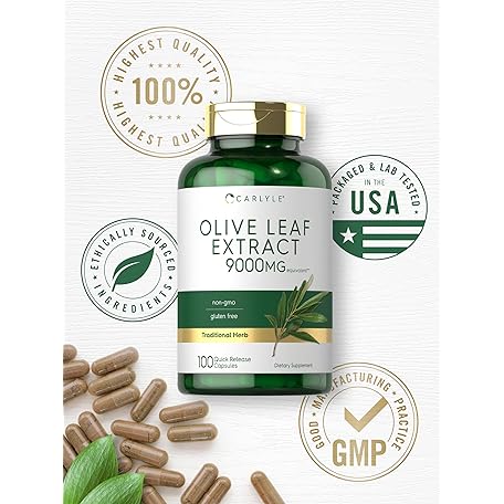 Sản phẩm Carlyle Olive Leaf Extract Capsules | 9000mg | 100 Count | Non-GMO, Gluten Free | High Potency Supplement đang được bán với giá ưu đãi là $10.3441 tại nước Mỹ.