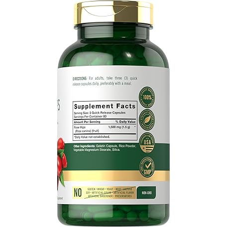 Sản phẩm Carlyle Rose HIPS | 1500mg | 240 Quick Release Capsules | Non-GMO and Gluten Free Herbal Supplement đang được bán với giá ưu đãi là $19.5982 tại nước Mỹ.