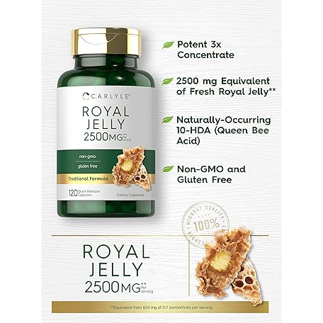 Sản phẩm Carlyle Royal Jelly Capsule | 2500mg | 120 Count | Non-GMO and Gluten Free Formula | Traditional Supplement đang được bán với giá ưu đãi là $18.5191 tại nước Mỹ.