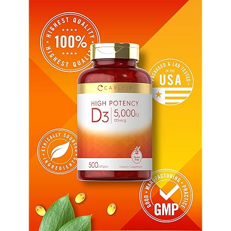 Sản phẩm Carlyle Vitamin D3 5000 IU Softgels | 500 Count | Value Size | Non-GMO and Gluten Free Supplement | High Potency Formula | 125mcg đang được bán với giá ưu đãi là $13.0691 tại nước Mỹ.