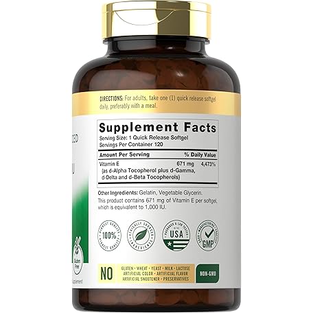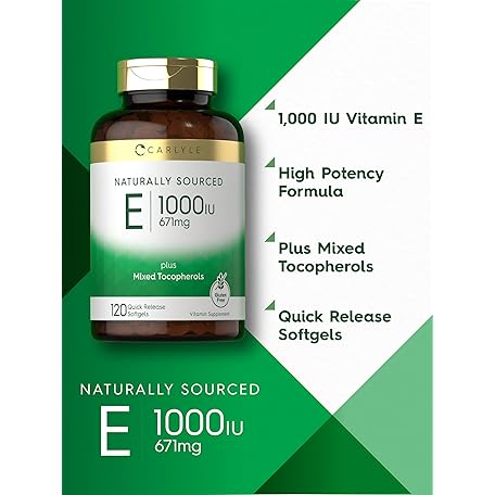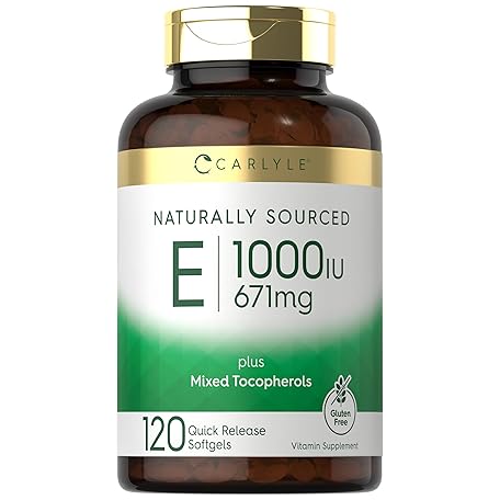 Sản phẩm Carlyle Vitamin E 1000 IU Softgels | with Mixed Tocopherols | 120 Pills | Naturally Sourced Supplement | Non-GMO and Gluten Free Formula đang được bán với giá ưu đãi là $25.0591 tại nước Mỹ.