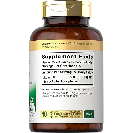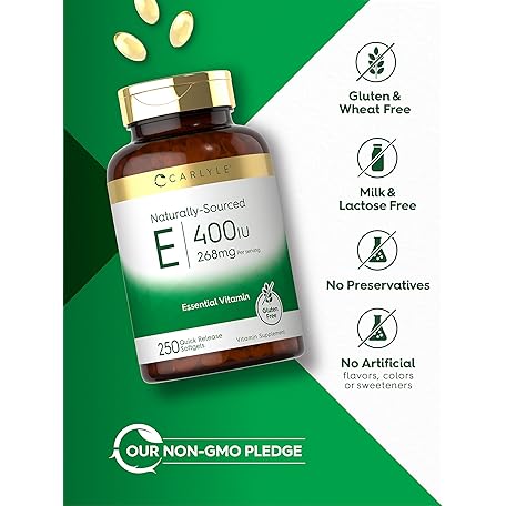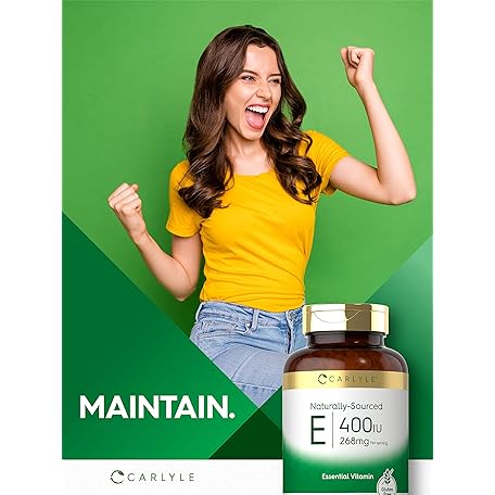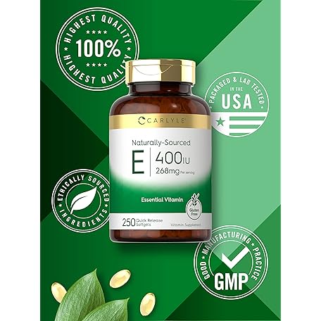 Sản phẩm Carlyle Vitamin E 400 IU Softgels Capsules | 250 Count | Naturally Sourced Supplement for Men and Women | Non-GMO and Gluten Free đang được bán với giá ưu đãi là $17.4291 tại nước Mỹ.
