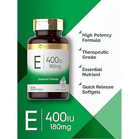 Sản phẩm Carlyle Vitamin E Softgel Capsules 400 IU | 180mg | 300 Count | Non-GMO and Gluten Free Formula đang được bán với giá ưu đãi là $18.5191 tại nước Mỹ.