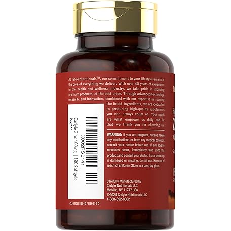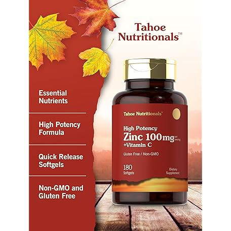 Sản phẩm Carlyle Zinc Supplement 100mg with Vitamin C | 180 Softgels | Non-GMO, Gluten Free | Tahoe Nutritionals đang được bán với giá ưu đãi là $9.7991 tại nước Mỹ.