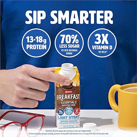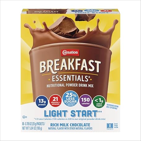 Thông tin sản phẩm Carnation Breakfast Essentials Light Start Powder Drink Mix, Rich Milk Chocolate, 8 Count Box of Packets