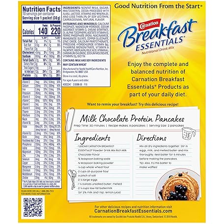 Thông tin sản phẩm Carnation Breakfast Essentials Powder Drink Mix, Rich Milk Chocolate, 10 Count Box of Packets