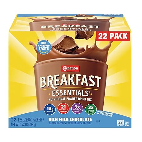 Thông tin sản phẩm Carnation Breakfast Essentials Powder Drink Mix, Rich Milk Chocolate, 22 Count Box of 1.26 Ounce Packets