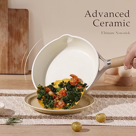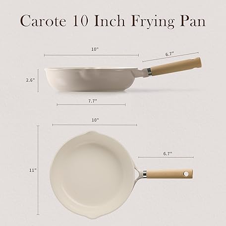 Thông tin sản phẩm CAROTE 10" Ceramic Frying Pan Skillet, Non Stick Skillet Chef's Pan, Healthy & PFOA/PFAS Free, Induction-Compatible, Taupe