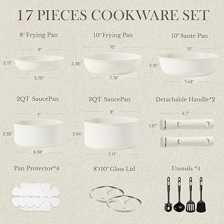 Thông tin sản phẩm CAROTE 17pcs Pots and Pans Set, Nonstick Cookware Set Detachable Handle, Induction Kitchen Cookware Sets Non Stick with Removable Handle, RV Cookware Set, Oven Safe