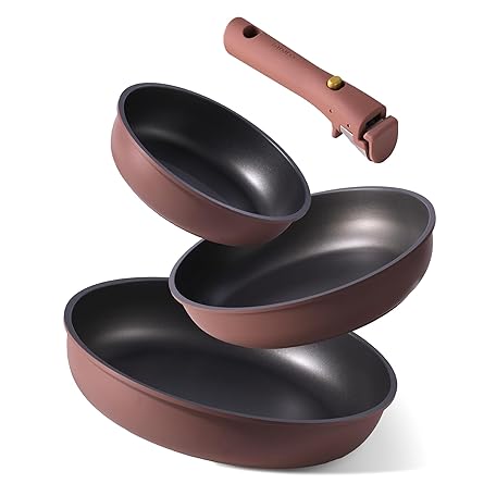 CAROTE 4pcs Non Stick Frying Pans, 8"+10"+12” Frying Pan Egg Pan Omelet Pans with Detachable Handle, Nonstick Cookware, PFOA Free, Induction Compatible & Oven Safe, Dishwasher Safe, Red