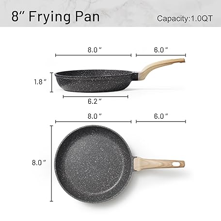 Thông tin sản phẩm CAROTE Nonstick Frying Pan Skillet,Non Stick Granite Fry Pan Egg Pan Omelet Pans, Stone Cookware Chef's Pan, PFOA Free,Induction Compatible(Classic Granite, 8-Inch)