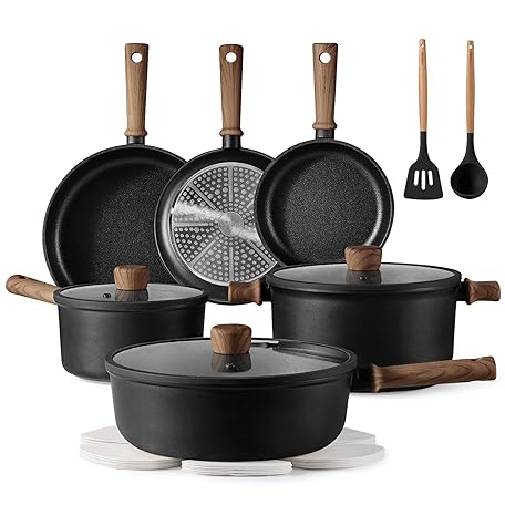 Thông tin sản phẩm CAROTE Nonstick Pots and Pans, Induction Cookware Set Kitchen Cooking Sets, Non Stick w/Frying Pan (PFOS, PFOA Free), Black, 16pcs