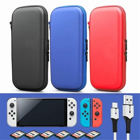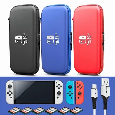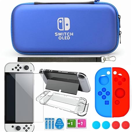 Carrying Case Compatible with Switch OLED Model 2021, Accessories Bundle with Screen Protector, Clear Cover for Switch-Pro Controller, Silicone Skin for Joy-Con and 4 Thumb Grip Caps(Blue)