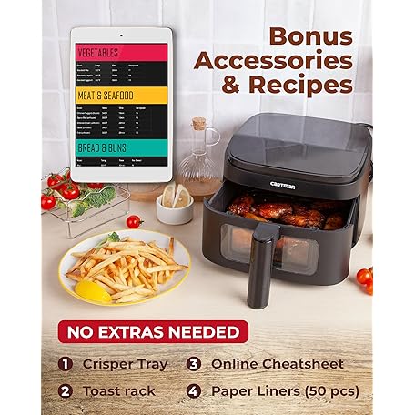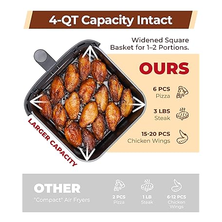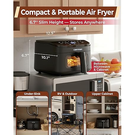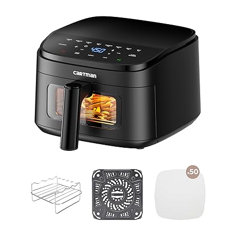 Cartman 4QT Compact Air Fryer, Extreme Flat(only 6.7in high), with Viewing Window and DC Motor, Up to 450℉, Touchscreen Controls with 7 Presets, Black, Small Air Fryers