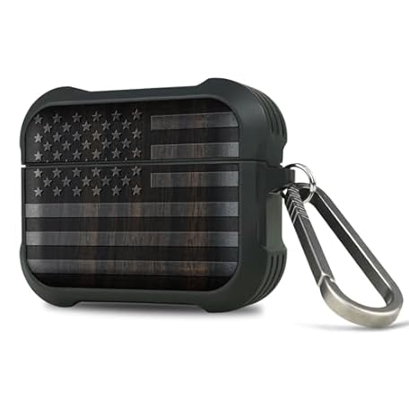 Carveit Wooden Case for AirPods Pro 3 Case (2025), Wood Artisan Engraved & TPU Shockproof Cover, Titanium Quick Released Clasp, Wireless Chargers Compatible (American Flag) Blackwood
