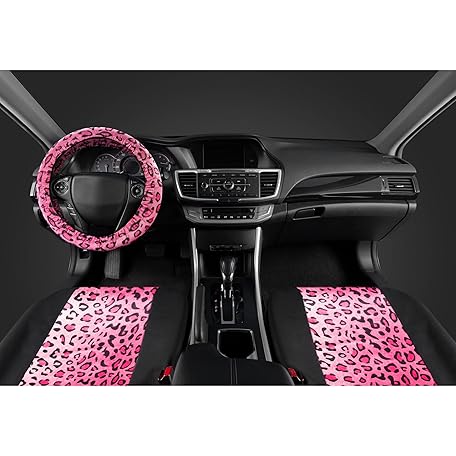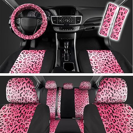 Thông tin sản phẩm carXS Leopard Print Car Seat Covers Full Set, Includes Matching Seat Belt Pads and Steering Wheel Cover, Two-Tone Cheetah Hot Pink Seat Covers for Women, Car Seat Protector Interior Covers