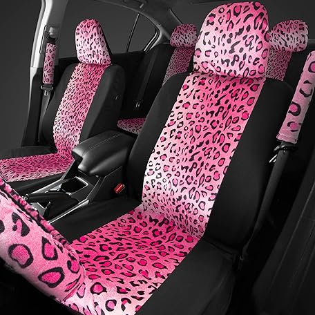 Sản phẩm carXS Leopard Print Car Seat Covers Full Set, Includes Matching Seat Belt Pads and Steering Wheel Cover, Two-Tone Cheetah Hot Pink Seat Covers for Women, Car Seat Protector Interior Covers đang được bán với giá ưu đãi là $38.041 tại nước Mỹ.